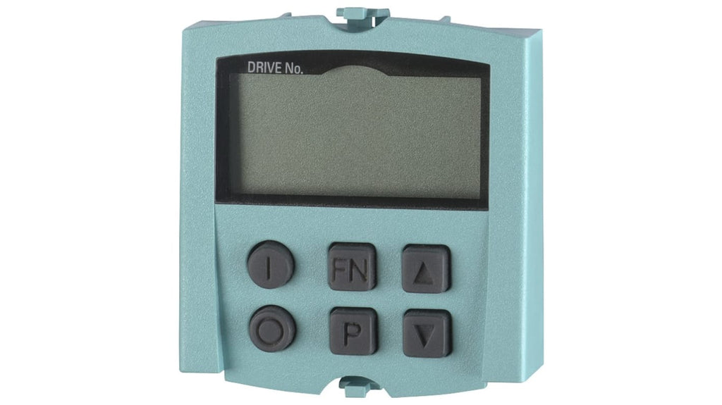 Pannello operatore Siemens per Unità di controllo SINAMICS, codice costruttore 6SL3055-0AA00-4BA0. Display a due righe, 6 tasti per impostazione parametri e informazioni diagnostiche. Tipo accessori: pannello operatore. Progettato per comandi elettronici.