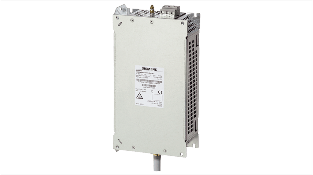 Reattore di linea Siemens, corrente nominale 11,6 A, tensione di alimentazione da 380 a 480 V, dotato di terminal a vite, classe di protezione IP20. Codice costruttore 6SL3203-0CD21-4AA0.