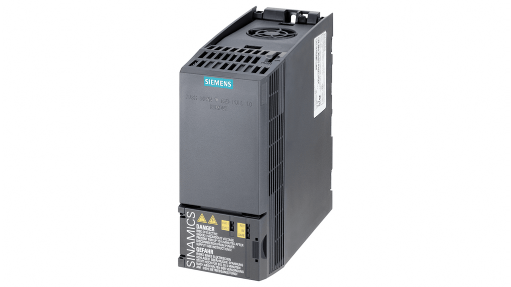 Inverter Siemens SINAMICS G120C, potenza nominale 0,75 kW, tensione di alimentazione 380 a 480 V CA, 3 fasi, corrente nominale 3,2 A, frequenza di uscita 0 a 240 Hz (controllo vettoriale), grado di protezione IP20, dimensioni 173 mm x 73 mm x 178 mm, interfaccia Profinet, funzionalità di sicurezza STO, progettato per motori in corrente alternata.
