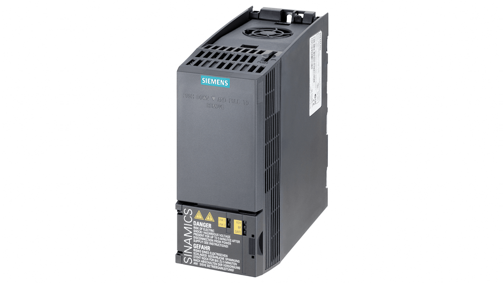 Inverter Siemens, 0,75 kW, 380-480 V CA, 3 fasi, controllo vettoriale senza sensore, frequenza di uscita 0-240 Hz (Vector Control), 0-550 Hz (V/F Control), grado di protezione IP20, comunicazione Profibus, corrente nominale 3,2 A, 4,1 A, dimensioni 155 mm x 173 mm x 73 mm, conforme a CE, cUL, UL, Direttiva EMC, Direttiva bassa tensione.