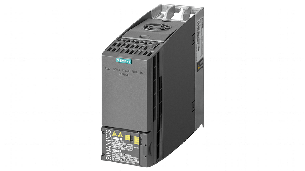 Inverter Siemens, potenza nominale 4 kW, tensione 400 V c.a., 3 fasi, frequenza di uscita 0 a 550 Hz, corrente nominale 8,8 A, grado di protezione IP20, compatibile con PROFINET, montaggio a pannello, ventola integrata, filtro incluso, abilitato per STO, dimensioni 196 x 73 x 203 mm, conforme a CE, c-tick, cULus. Codice costruttore 6SL3210-1KE18-8AF1, serie SINAMICS G120C.