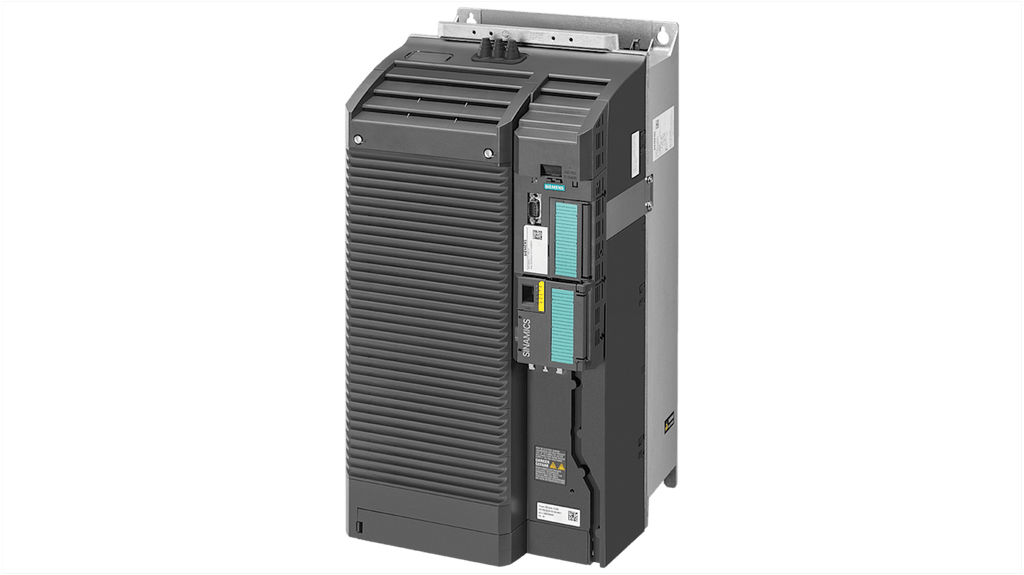 Convertitore Siemens SINAMICS G120C, potenza nominale 55 kW, tensione di alimentazione 400 V, 3 fasi, corrente nominale 103 A, frequenza di uscita 0 a 550 Hz, comunicazione Profinet, grado di protezione IP20, dotato di funzione STO. Dispositivo compatto e robusto, opzione per pannello operatore di base o avanzato. Codice costruttore 6SL3210-1KE31-1UF1.