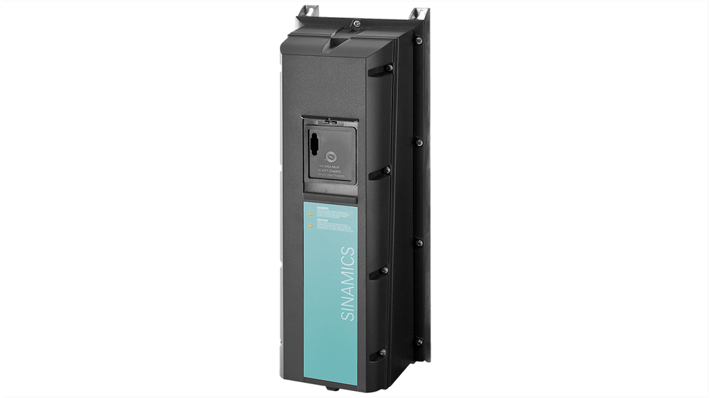 Inverter Siemens, potenza nominale 7,5 kW, tensione di alimentazione 400 V, 3 fasi, corrente nominale 14 A, grado di protezione IP55, temperatura ambiente da -10 a 40 gradi Celsius, modulo di alimentazione PM230 con filtro di classe A integrato, approvazione UL, serie 6SL3223.