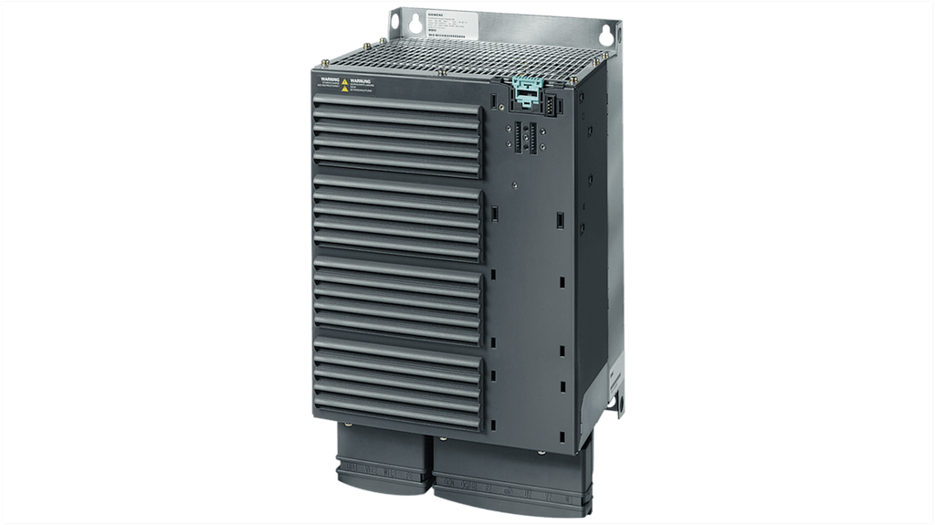 Inverter trifase Siemens, potenza nominale 30 kW, tensione di alimentazione 400 V, corrente nominale 56 A, grado di protezione IP20, gamma di temperatura ambiente da -10 a +50 gradi Celsius, modulo di alimentazione PM230 con filtro di classe A integrato, progettato per il recupero dell'energia, serie 6SL3225.