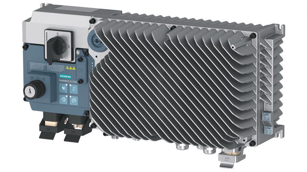 Convertitore Siemens, potenza nominale 3 kW, 3 fasi, tensione di alimentazione 380 a 480 V, corrente nominale 6,76 A, frequenza di uscita 550 Hz, serie SINAMICS G115D. Sistema modulare, installazione diretta sulla macchina, senza armadietto di controllo, sicurezza integrata con funzione sto, compatibile con motori asincroni IE3 e motori sincroni IE4. Design per cablaggio e messa in servizio rapidi.