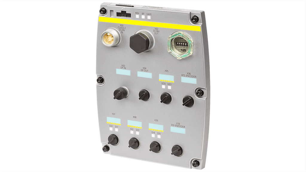 Inverter Siemens, 24 V c.c., con connettività PROFIBUS, funzionalità Safety Integrated, 6 ingressi digitali, 3 ingressi digitali a prova di guasto, 2 uscite digitali, 1 uscita digitale a prova di guasto, 2 ingressi analogici, grado di protezione IP65, conforme a RoHS. Utilizzabile con serie 6SL3544-0FB21.