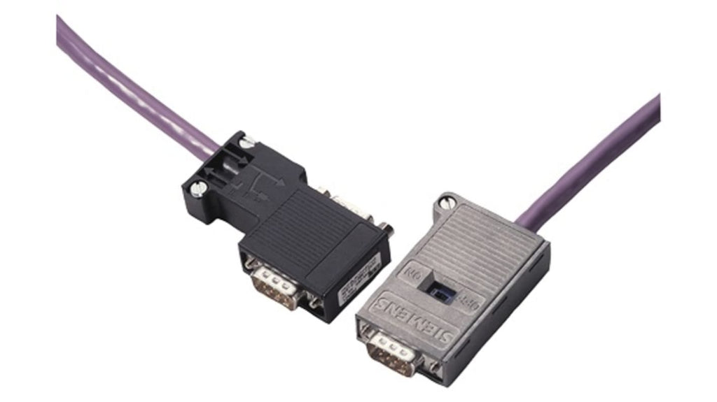 Cavo PLC Siemens per HMI, codice costruttore 6XV18302AN10, pre-assemblato con due connettori D-Sub a 9 poli, lunghezza 10 metri, termina con resistenze collegabili, approvazione EAC, marcatura CE, grado di protezione IP20, tipo accessori: cavo, per uso con HMI.
