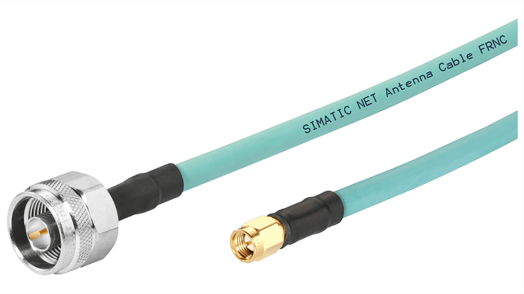 Cavo coassiale per collegamento antenna IWLAN, connettori Tipo N e SMA maschio, lunghezza 2 m, impedenza 50 Ω, diametro esterno 6.3 mm, schermatura intrecciata in rame stagnato, progettato per antenne SIMATIC NET e dispositivi SCALANCE M, con terminazione. Marchio Siemens, codice costruttore 6XV18755LH20.