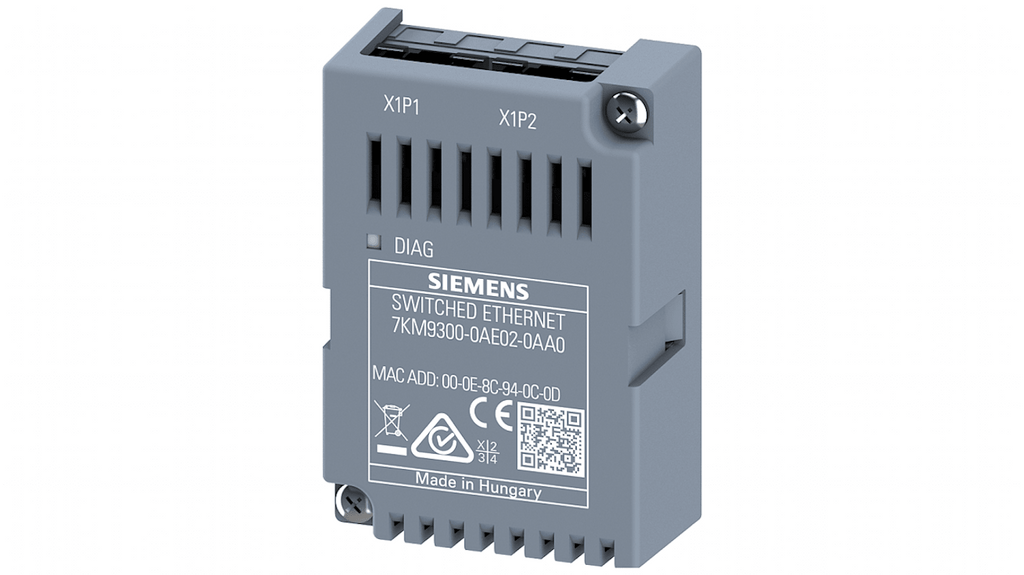 Modulo di espansione PROFINET Siemens Switched Ethernet per PAC32x0, isolamento galvanico, grado di protezione IP20, fissaggio a innesto, 2 collegamenti elettrici RJ45, dimensioni 2,48 x 1,6 x 0,86 poll. Compatibile con serie 7KM9300, progettato per uso con dispositivi PAC32x0 / 4200 / 3VA COM100/ 800.