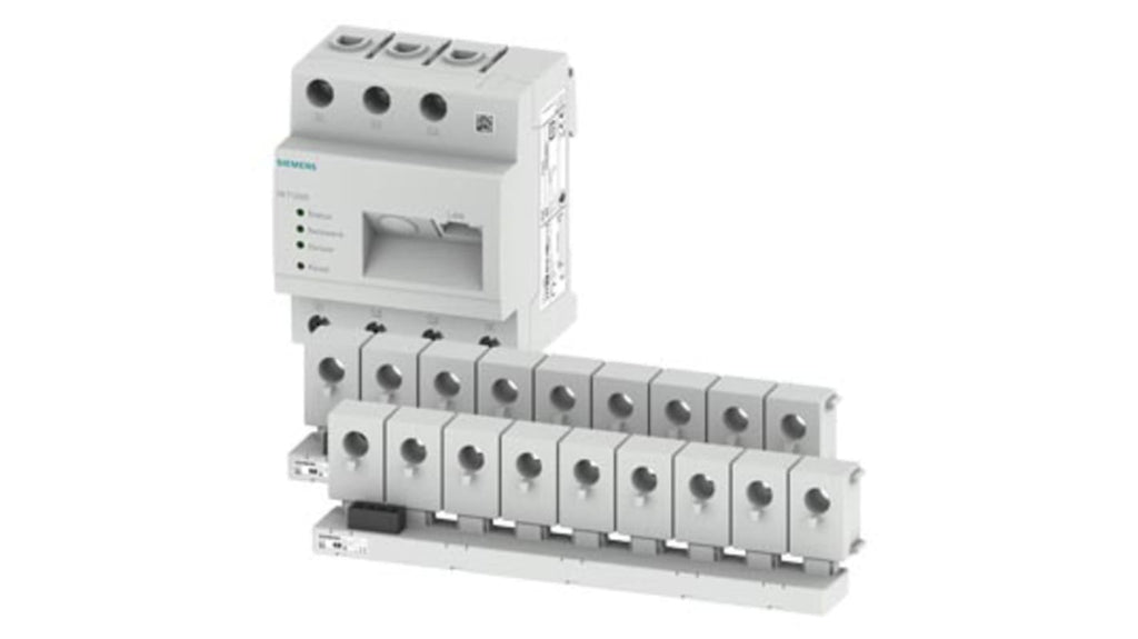 Contatore di energia digitale Siemens, serie 7KT PAC1200, codice 7KT1222, display digitale, precisione misuratore ±2%, misurazione massima 5 A, 50 Hz, 400 V, approvazioni CE, starter kit con 18 barre sensori 2x 9 e data manager 18.