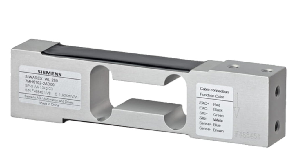 Cella di carico Siemens, modello Siwarex WL 260, carico nominale 3 kg, classe di precisione C3, cavo di 3 m con 6 conduttori, materiale alluminio, grado di protezione IP65. Specifiche tecniche: serie Siwarex WL.