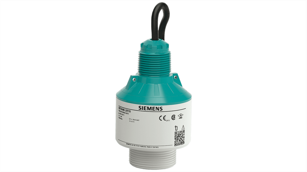 Trasmettitore di livello radar. Portata continua e senza contatto fino a 15 m per liquidi, fanghi o solidi. Cavo di collegamento integrato di 10 m. Funzione Bluetooth. Serie SITRANS LR110. Codice costruttore 7ML5310-1BB06-0AA0. Marchio Siemens.