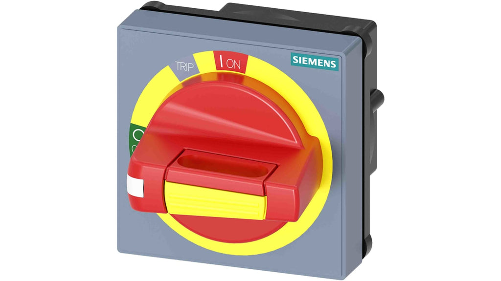 Manopola rotante per interruttori Siemens 8UD1721-0AB25, compatibile con 3VA1/2 100/160/250, lunghezza 36mm, colore rosso-giallo, bloccabile, protezione IP65, serie SENTRON. Accessorio con telaio di schermatura e arresto di emergenza, progettato per garantire una gestione sicura e precisa.