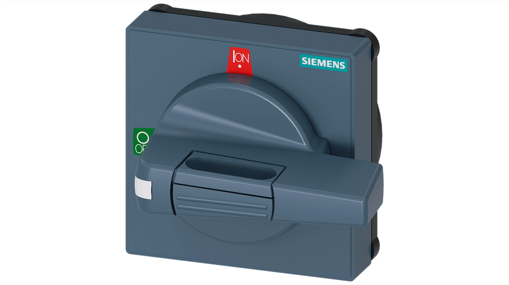 Manopola rotante Siemens, colore grigio, diametro 45 mm, per albero 8x8, compatibile con 3KD misura 1 e 2, 3KF misura 1. Telaio di mascheratura di serie con dimensioni di illuminazione 75x75. Grado di protezione IP65. Approvato da EAC, UL e VDE. Serie SENTRON.