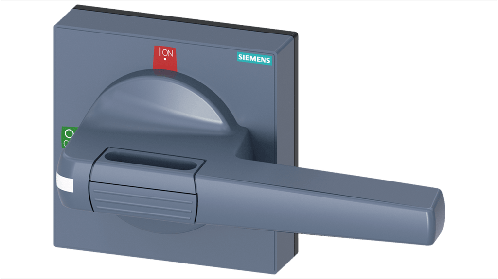Manopola rotante Siemens, colore grigio, dimensioni 100mm, grado di protezione IP65, compatibile con 3KD misura 4 e 3KF misura 4. Manico con piastra di mascheratura standard 100 x 100, impugnatura di 140mm, albero 10x10. Approvato da EAC, UL e VDE. Serie SENTRON.