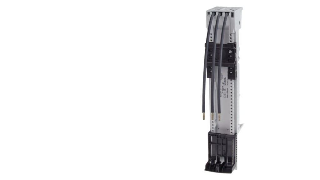 Unità di collegamento per barra di distribuzione per interruttore automatico. Adattatore per dispositivi Siemens S00, compatibile con sistema di barre di distribuzione da 60 mm. Cavi speciali saldati AWG 12, guida di montaggio avvitata con distanziale incapsulato lungo 167 mm. Approvazione CE, EAC. Accessori per gamma SENTRON.