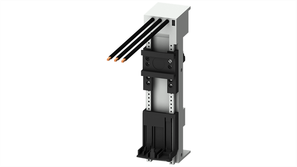 Adattatore Siemens per Barra di distribuzione, ritardo di corrente 32 A, compatibile con sistema di barre di distribuzione 45x200 mm, cavi speciali lunghi saldati su AWG 10, lunghezza 167 mm con posizionatore, approvazione EAC e CE. Specifiche tecniche: accessori, adattatore, gamma, Sentron, per utilizzo con barra di distribuzione.