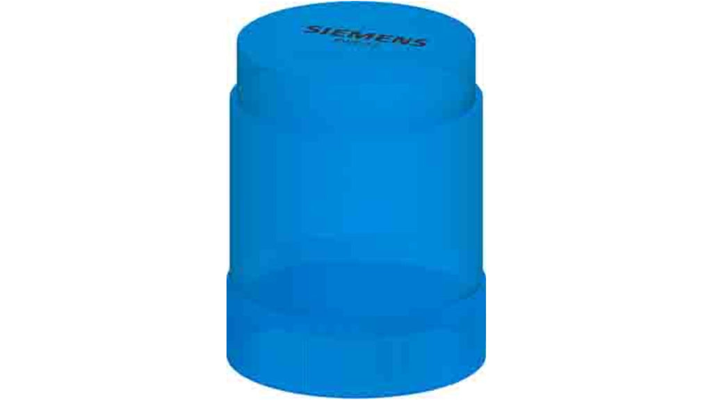 Elemento luce fissa Siemens, segnalatore luminoso multifunzione, LED blu, diametro 50 mm, tensione 24 V AC/DC, collegamento AS-Interface, meccanismo a baionetta per sostituzione rapida, resistente agli urti e alle vibrazioni, opzioni di funzionamento continuo e lampeggiante, compatibile con moduli impilabili fino a 4 unità.