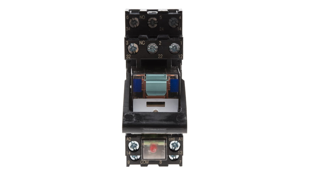 Relè a innesto Siemens serie LZS, bobina 24V cc, configurazione contatto 3PDT, montaggio A innesto, numero di poli 3, tipo di terminale a vite. Dimensioni: profondità 72mm, altezza 72mm, lunghezza 28mm. Capacità di commutazione c.a. 15, c.c. 13, collegamento resistente alle vibrazioni. Modello LZS:PT3A5L24, completo di connettore femmina, clip di mantenimento/rilascio, modulo a LED e etichetta di iscrizione.