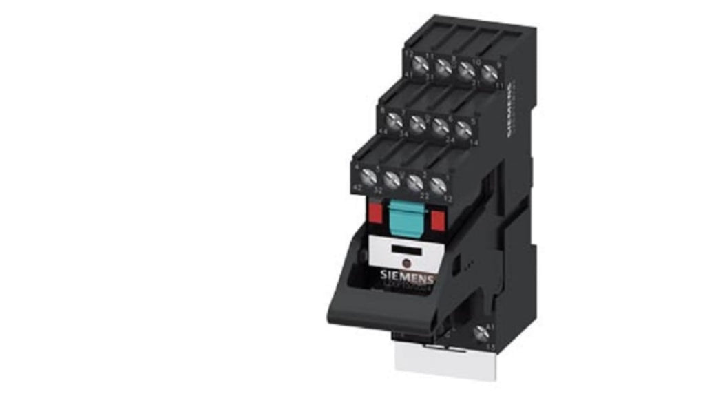 Relè di interfaccia elettromeccanici, bobina 115V ca, configurazione contatto 4PDT, montaggio a innesto, morsetti a vite. Dotato di 3 contatti di commutazione, pulsante di prova per forzare lo stato di commutazione, indicatore LED per stato di commutazione. Serie LZS, codice costruttore LZS:PT5B5S15, marchio Siemens.
