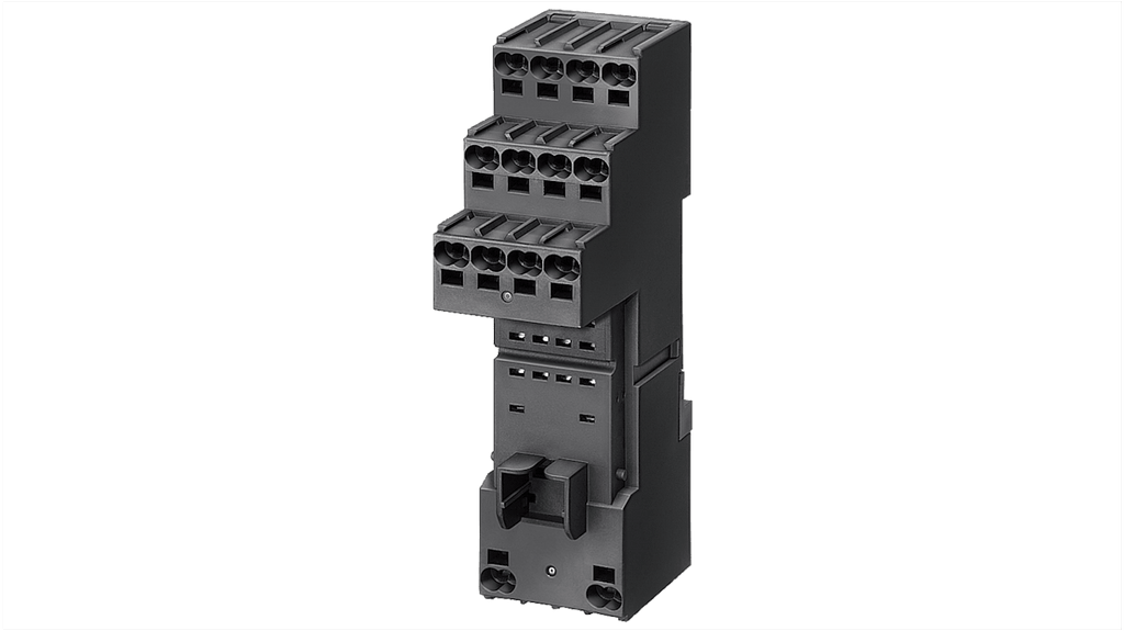 Zoccolo per relè a innesto. Connettore femmina per relè PT, 2 contatti di commutazione, terminal a molla di isolamento logico, comportamento monostabile. Grado di protezione IP20, temperatura operativa da -40 a 70 gradi. Montaggio su guida a innesto, terminazione a vite. Marchio Siemens, codice costruttore LZS:PT7872P.