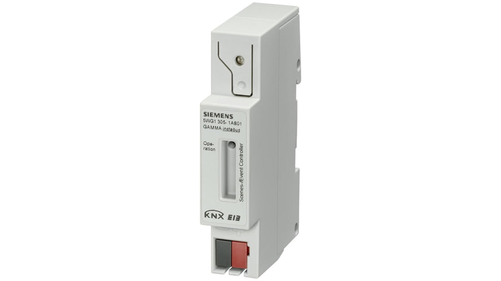 Controllore di scene/eventi Siemens, montaggio su guida DIN, programmabile per richiamare fino a 8 scene con diversi stati e valori di commutazione, supporta vari tipi di dati di oggetti di comunicazione, offre flessibilità con programmi di eventi e task, alimentazione 21-30 V c.c., serie N 305.
