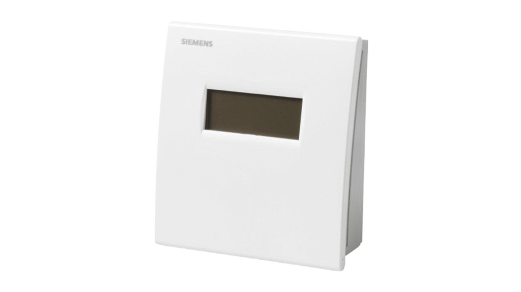 Sensore di temperatura ambiente Siemens, codice QAA2061D, montaggio a parete, altezza 100 mm, lunghezza 90 mm. Tipo di dispositivo: sensore di temperatura ambiente.
