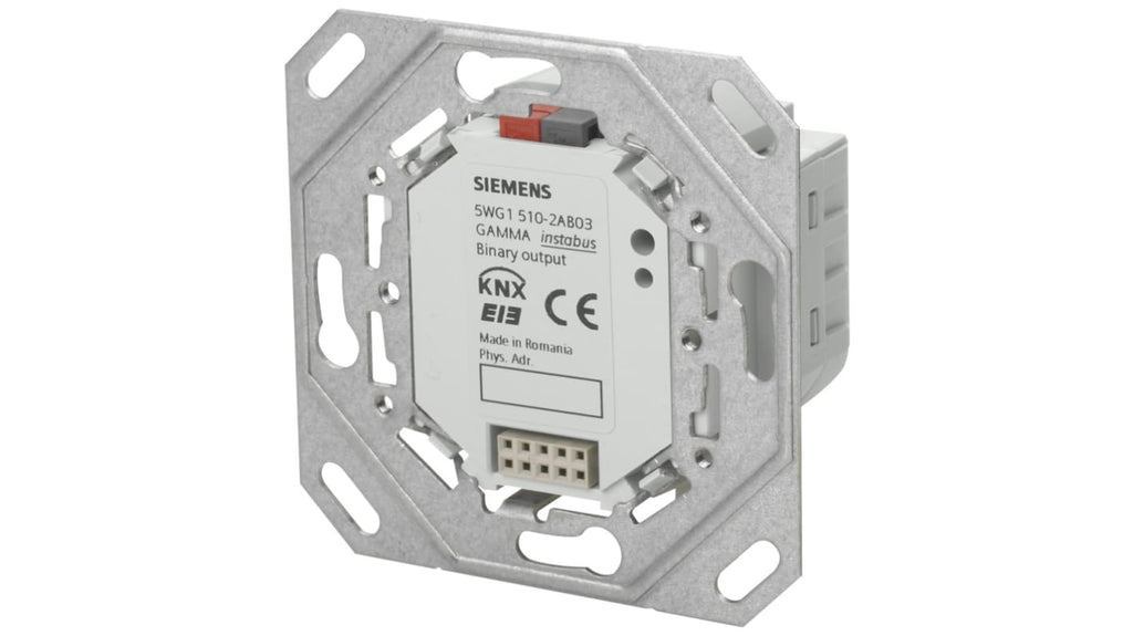 Modulo di uscita per interfaccia ITV, Siemens UP 510, con due uscite di commutazione, relè, tensione di alimentazione 24 V c.c., compatibile con bus KNX/EIB. Design compatto, funzione Building site per automazione, supporta carichi resistivi, induttivi e capacitivi. Adatto per sistemi di controllo elettrico e illuminazione intelligente. Montaggio su guida DIN.