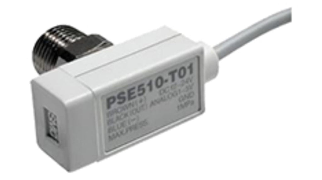 Sensore di pressione relativa SMC, massimo -101kPa, uscita analogica 0,6-1 V e 1-5 V, precisione ±2 percento, alimentazione 12-24 V c.c., corrente massima 15 mA, collegamento al processo tubo 6 mm, connettore ZS-28-C, custodia in PBT, grado di protezione IP40, fluido misurato aria e gas. Compatto e leggero, adatto per montaggio in spazi ridotti. Codice costruttore PSE541-R06.