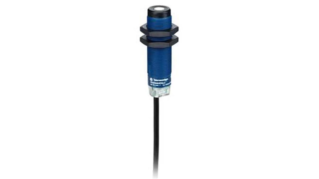 Sensore di prossimità cilindrico ultrasonico NPN, rilevamento da 50 a 500 mm, alimentazione 12-24 V c.c., grado di protezione IP67, frequenza di commutazione 300 Hz, corrente di commutazione 40 mA, temperatura operativa da -30 a +70 gradi Celsius, corpo in PBT, lunghezza 77.62 mm. Ideale per applicazioni in vari settori industriali. Codice costruttore VM18NNO, marchio Telemecanique Sensors.
