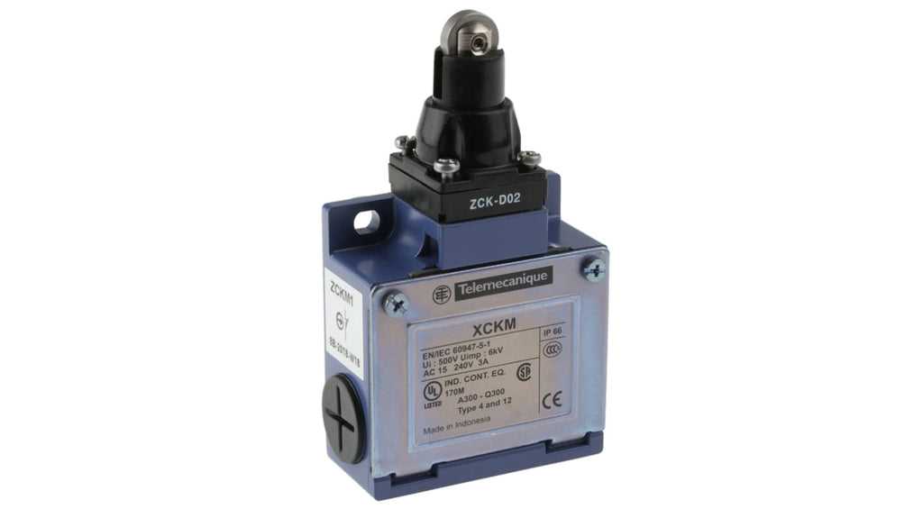 Interruttore di fine corsa Telemecanique, stantuffo, NO/NC, 240V, 10A, IP66. Tipo attuatore: stantuffo, configurazione contatti: 1NC-1NA, azione rapida, materiale custodia: lega di zinco, dimensioni: 64mm x 64mm x 30mm, temperatura operativa: -25°C a +70°C, durata meccanica: 20000000 cicli. Standard: UL, CSA, VDE0660, IEC947-5-1. Codice costruttore: XCKM102.