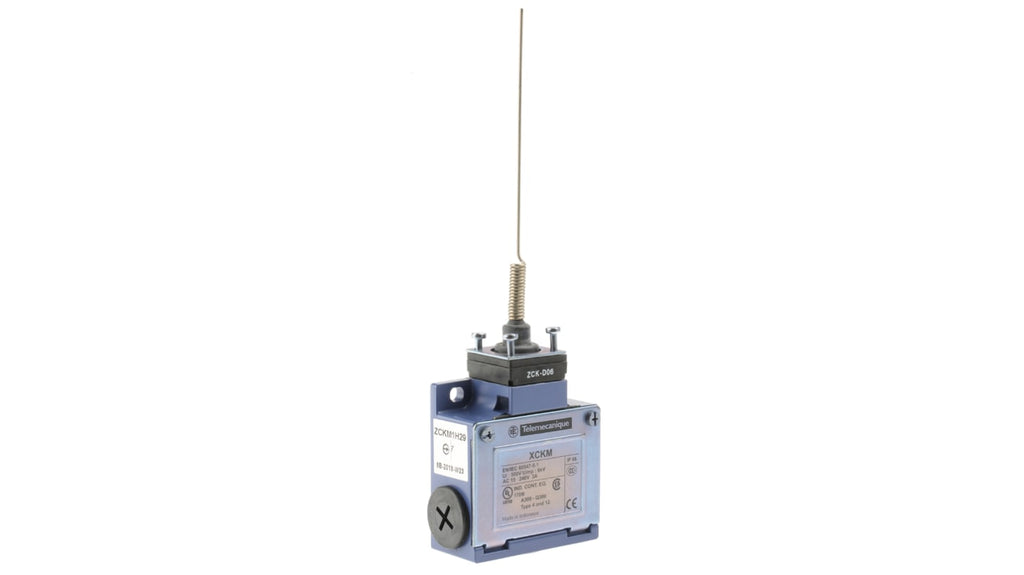 Interruttore di fine corsa Telemecanique, molla elicoidale, configurazione NO/NC, tensione massima 240V, corrente massima 10A, grado di protezione IP66, durata meccanica 10000000 cicli, temperatura operativa da -25 a +70 gradi Celsius, dimensioni 64mm x 30mm x 63mm, materiale custodia in lega di zinco, serie OsiSense XC, azione rapida. Codice costruttore XCKM106H29.