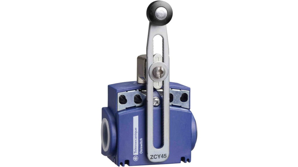 Interruttore di fine corsa con attuatore a rullo, configurazione 1NC/1NA, corrente massima 10A, protezione IP66 e IP67, custodia in plastica, azione rapida, conforme alla norma IEC 60947-5-1 Appendice K, certificazioni UL, CSA, CCC, elevata precisione di ripetitività, alta resistenza alle condizioni ambientali industriali. Codice costruttore: XCKT2145G11, marchio: Telemecanique Sensors.