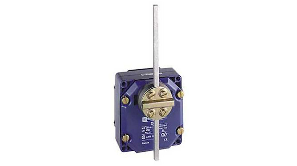 Interruttore di fine corsa per sollevamento e gestione meccanica, leva, configurazione NO/NC, protezione IP54, corrente massima 3A, tensione massima 240V AC, 250V DC, azione rapida, durata meccanica 10000000 cicli, temperatura operativa da -25 a +70 gradi Celsius, dimensioni 95mm x 85mm x 53mm, materiale custodia in lega di zinco, serie OsiSense XC.