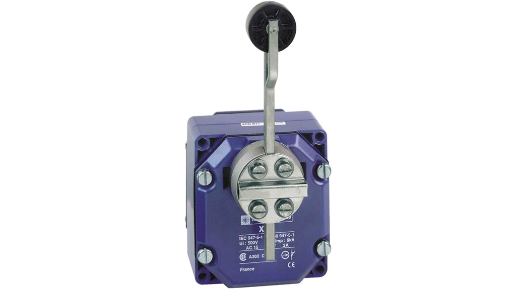 Interruttore di fine corsa con attuatore a rullo, configurazione 2NA e 2NC, corrente massima 10A, protezione IP66 e IP67, custodia in metallo, azione rapida. Conforme alla norma IEC 60947-5-1, elevata precisione di ripetitività, alta resistenza alle condizioni ambientali industriali. Certificazioni UL, CSA, CCC. Codice costruttore XCRB12, marchio Telemecanique Sensors.