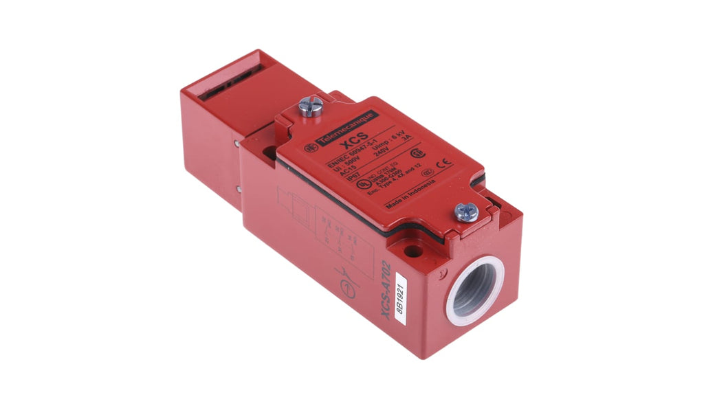 Interruttore di interblocco di sicurezza, a chiave, 2NC/1NA, IP67, 240V, 6A, dimensioni 40 x 113,5 x 44 mm, peso 0,44 kg, lega di zinco, forza di azionamento minima 20 N, 8 direzioni della testa, durata meccanica oltre 1.000.000 cicli, temperatura operativa da -25 a +70 gradi, conforme a EN1088 e EN60204. Attuatori da ordinare separatamente.