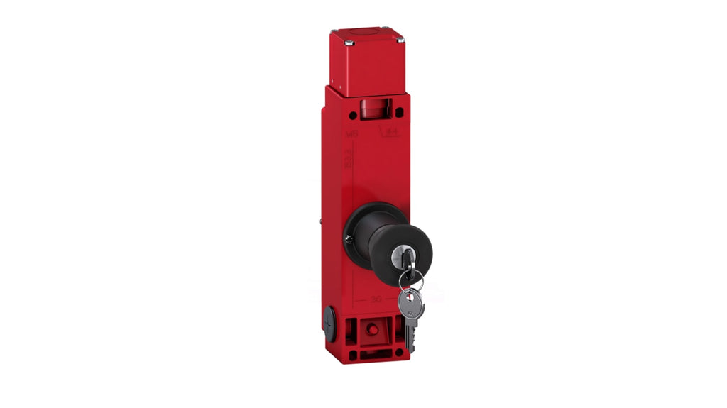 Interruttore di interblocco di sicurezza a chiave, 4NC/2NO, 240V, contatti a interruttore lento, non cortocircuitante, grado di protezione IP66, conforme a EN/IEC 60529 e EN/IEC 60947-5-1, durata meccanica fino a 30000 cicli, resistenza agli urti 10 gn per 11 ms conforme a IEC 60068-2-27, custodia in lega di zinco, connessione M20, serie XCSLF.