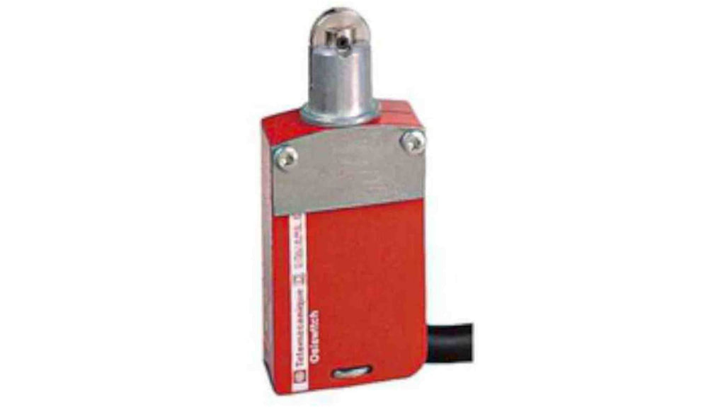 Interruttore di interblocco a rotella, 2NC/1NA, protezione IP66, IP67, IP68, attuatore in metallo, cavo di 1 m, serie XCSM, lega di zinco zamak, durata meccanica 10 milioni di cicli, dimensioni 30 mm x 70 mm x 16 mm.