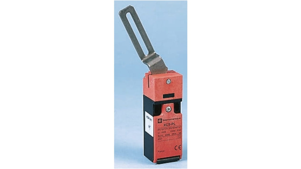 Interruttore di sicurezza a cerniera, serie XCS PL, azionamento a leva, configurazione NO/NC, corrente massima 6A, tensione massima c.a. 240V, tensione massima c.c. 250V, lunghezza albero 72.5mm, materiale plastico, non lucchettabile, orientamento testa su quattro lati, autorizzatori EN 60947-5-1, per macchine industriali leggere e senza inerzia.