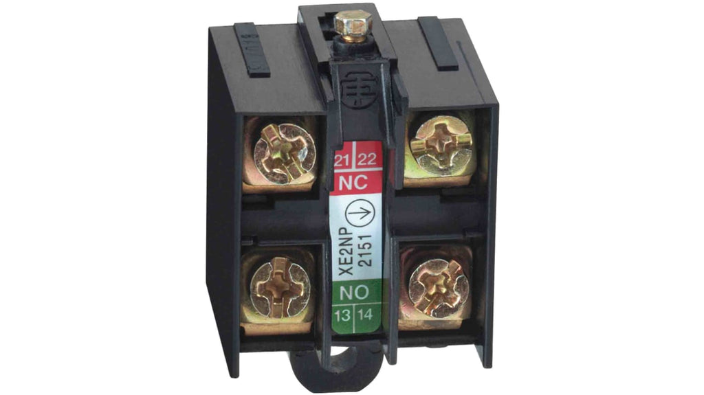 Interruttore di fine corsa con stantuffo, configurazione 1NC/1NA, corrente massima 10A, grado di protezione IP66 e IP67, materiale custodia in plastica, compatibile con modelli XC2J, XCKP, XCKM, XCKS, XCKD, contatti in materiale argentato, prodotto Green Premium, privo di mercurio.