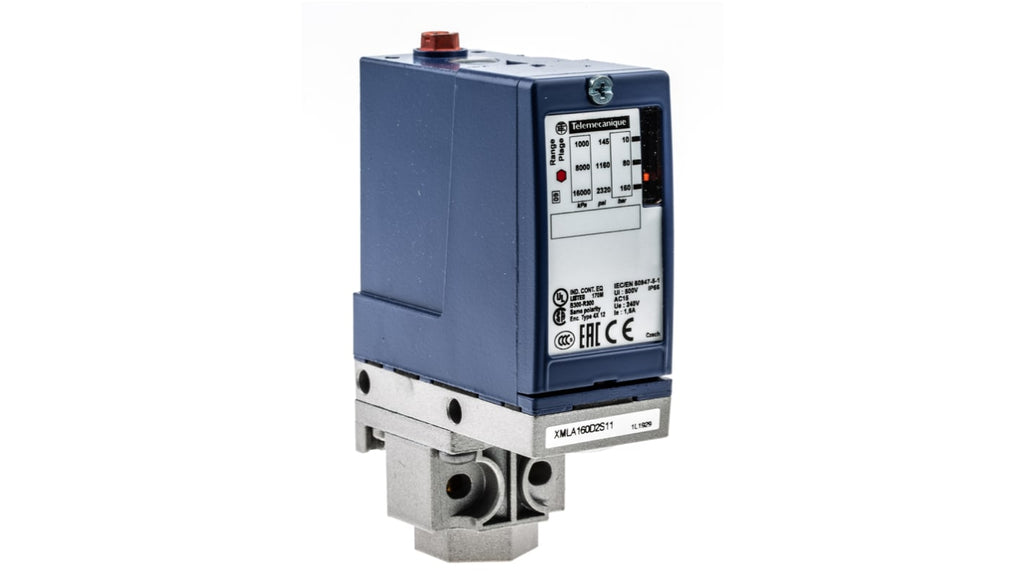Sensore di pressione differenziale per circuiti di controllo, pressione massima 160 bar, uscita relè, differenziale fisso, temperatura operativa da -25 a +70 gradi Celsius, grado di protezione IP66, collegamento fluido 1/4 NPT, collegamento elettrico con pressacavo PG13.5, corrente massima 3 A AC, tensione di alimentazione 120-240 V AC, materiale custodia in lega di zinco.