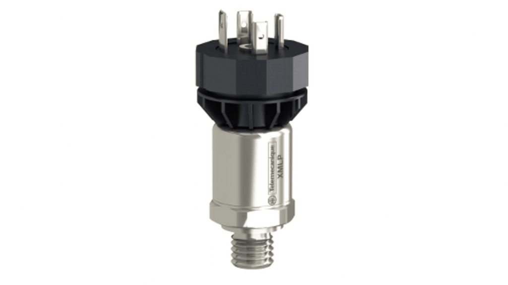 Pressostato analogico Telemecanique Sensors, pressione massima 400 bar, uscita 0,5-4,5 V, precisione 0,1%, ±0,5%, tempo di risposta ≤2 ms, corrente massima 7 mA, alimentazione 5 V c.c., grado di protezione IP65, temperatura operativa da -30 a +85 gradi, montaggio su filettatura, custodia in acciaio inox 316L e FPM, connettore maschio a 3 pin EN 175301-803-A.