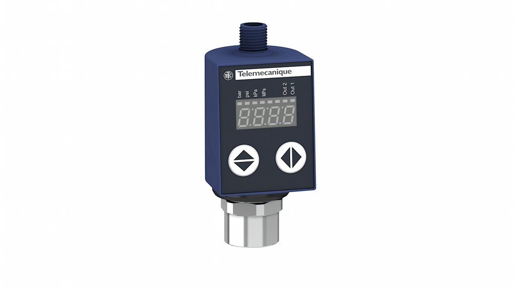 Sensore di pressione differenziale. Pressione massima di lettura 2.5bar, minima 0.2bar, precisione 1%. Uscita discreta, alimentazione 24 V c.c. Fluidi misurati: aria, acqua dolce, olio idraulico, liquido di refrigerazione. Collegamento al processo G1/4. Temperatura d'esercizio -20 a 80 gradi Celsius. Grado di protezione IP65, IP67. Marchio Telemecanique Sensors, codice costruttore XMLR2D5G2P05.