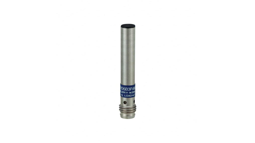 Sensore induttivo cilindrico PNP, M8 x 1, rilevamento 2,5 mm, tensione di alimentazione 10-36 V c.c. e 12-24 V c.c., corrente di commutazione 200 mA, frequenza di commutazione massima 2500 Hz, temperatura operativa da -25°C a +70°C, grado di protezione IP65 e IP67, materiale ottone nichelato e PPS, connettore M8 a 3 pin, montaggio a filo, conforme a CE, CSA, UL.