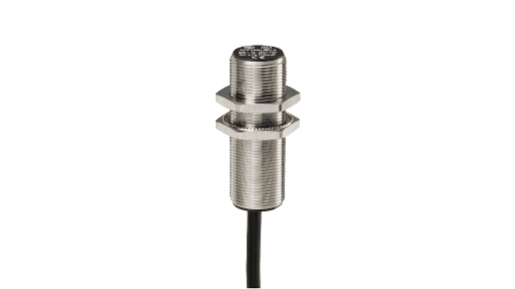 Sensore di prossimità induttivo cilindrico, NPN, M18 x 1, rilevamento 10 mm, tensione di alimentazione 24 V, montaggio a filo, grado di protezione IP67, temperatura operativa da -25 a 70 °C, protezione contro inversione di polarità, sovraccarichi e cortocircuiti, lunghezza 53 mm. Codice costruttore XS118BHNBL2, marchio Telemecanique Sensors.