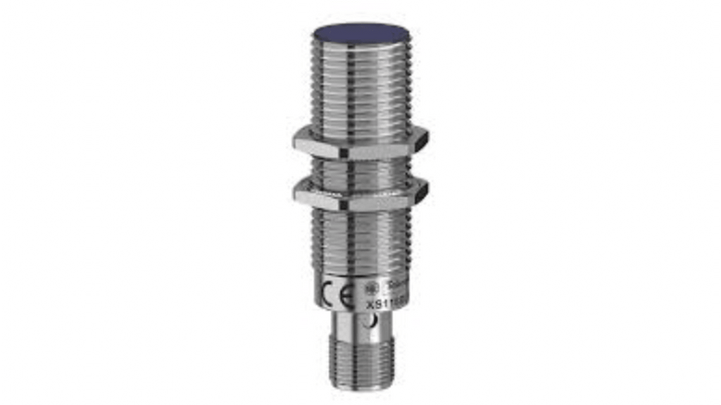 Sensore di prossimità induttivo cilindrico, tecnologia induttiva, montaggio a filo, uscita PNP, rilevamento 8 mm, tensione di alimentazione 24 V, connettore maschio M12 a 4 pin, grado di protezione IP67, temperatura operativa da -25 a 70 gradi Celsius, dimensioni 64 mm. Codice costruttore XS118BHPAM12, marchio Telemecanique Sensors.