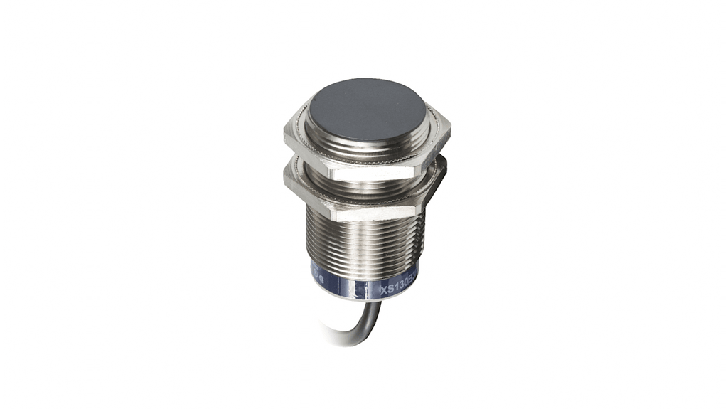 Sensore di prossimità induttivo cilindrico, PNP, M30 x 1.5, rilevamento 15 mm, tensione di alimentazione 12-24 V, uscita normalmente chiusa, lunghezza cavo 2 m, capacità di commutazione 200 mA, grado di protezione IP65/IP67, montaggio a filo, materiale metallico, dimensioni 45 mm. Prodotto da Telemecanique Sensors, codice costruttore XS130B3PBL2.