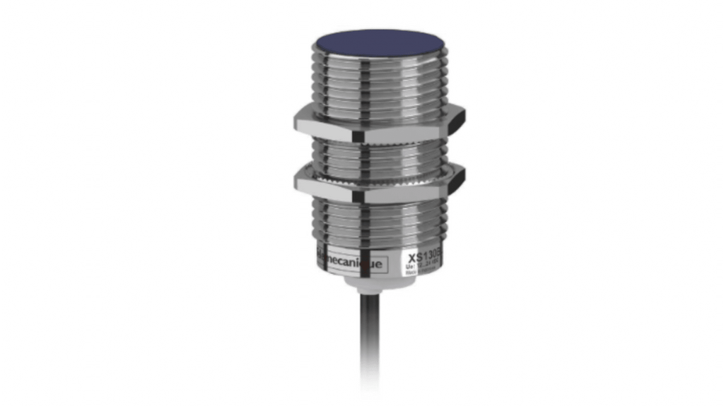 Sensore di prossimità induttivo cilindrico, NPN, M30 x 1.5, rilevamento 15 mm, tensione di alimentazione 24 V, montaggio a filo, grado di protezione IP67, temperatura operativa da -25 a 70 °C, protezione contro inversione di polarità, sovraccarichi e cortocircuiti, lunghezza 57 mm. Codice costruttore XS130BHNBL2, marchio Telemecanique Sensors.