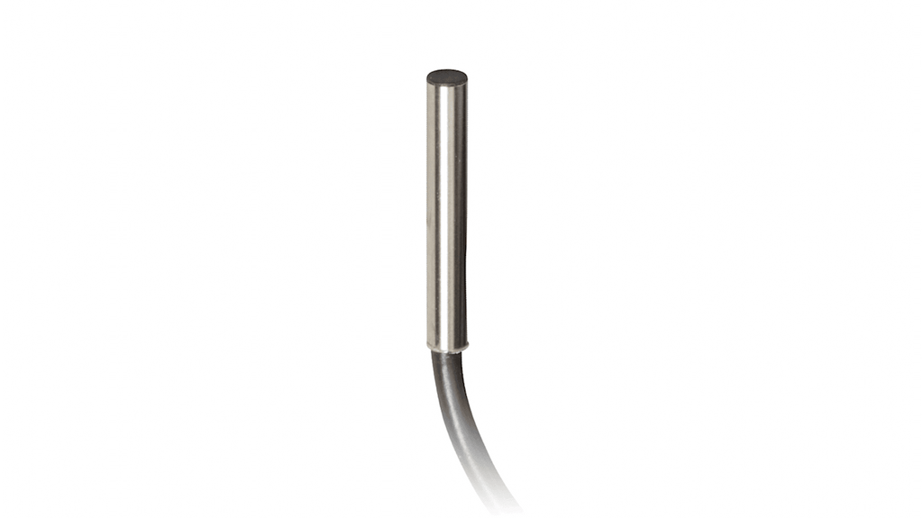 Sensore di prossimità induttivo cilindrico, PNP, rilevamento 1 mm, tensione di alimentazione 5-24 V, uscita discreta normalmente chiusa, montaggio incastrato, corpo in metallo, grado di protezione IP67, lunghezza 29 mm, cavo di collegamento 2 m, tecnologia a oscillatore per rilevamento di oggetti metallici. Codice costruttore XS1L04PB310, marchio Telemecanique Sensors.
