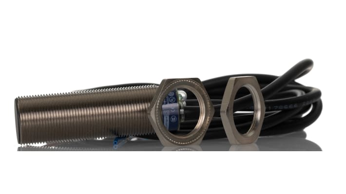 Sensore di prossimità induttivo Telemecanique OsiSense XS, cilindrico M18 x 1, rilevamento 5 mm, tensione 20-250 V c.c. e 20-250 V c.a., montaggio a filo, corpo in ottone nichelato, grado di protezione IP68, temperatura operativa da -25 a +70 gradi, uscita a circuito N.C., cavo di collegamento 2 m, peso 0,12 kg, certificazioni CSA, UL, CCC, marcatura CE.